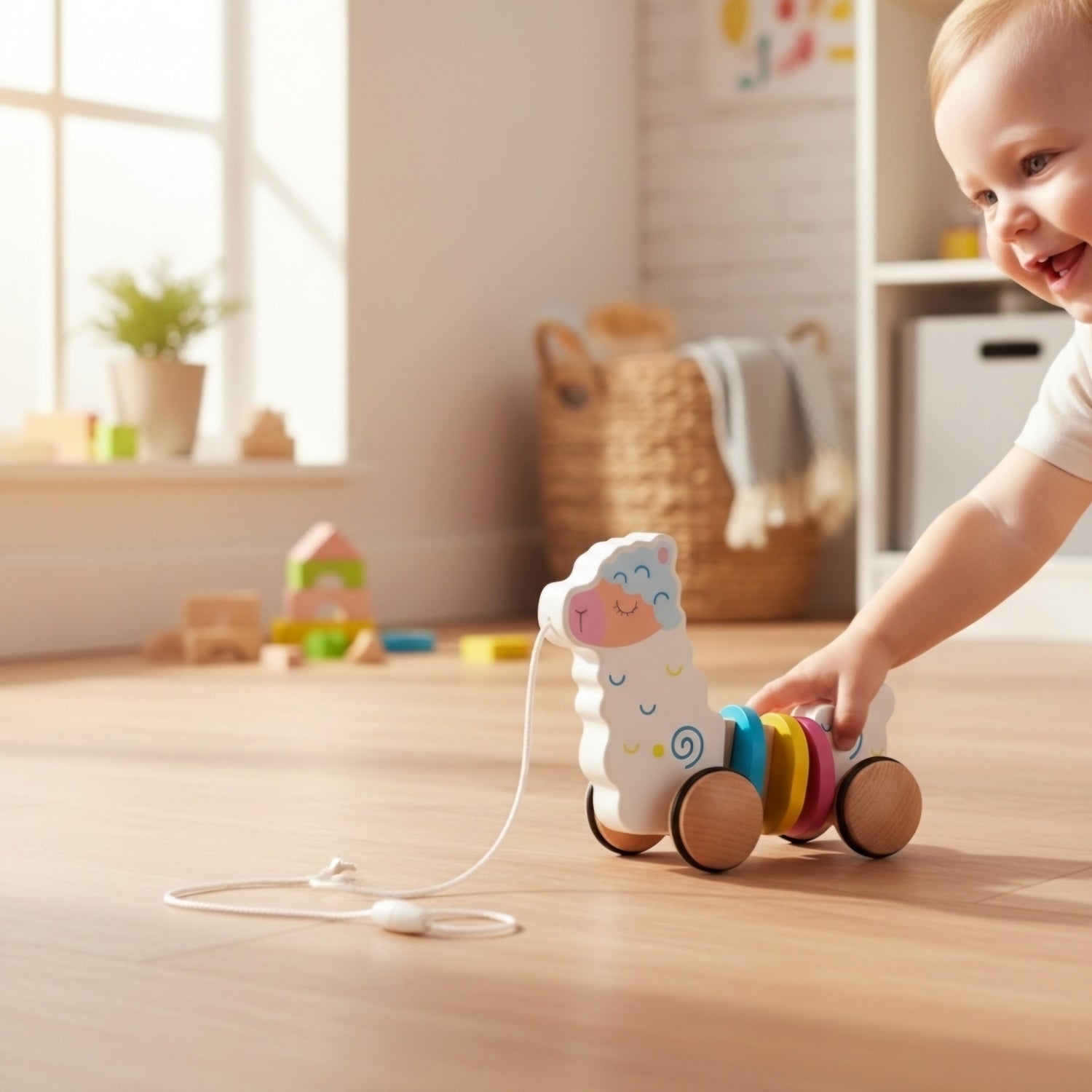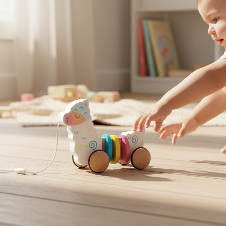 Lama à tirer en bois | Jouet à tirer en bois