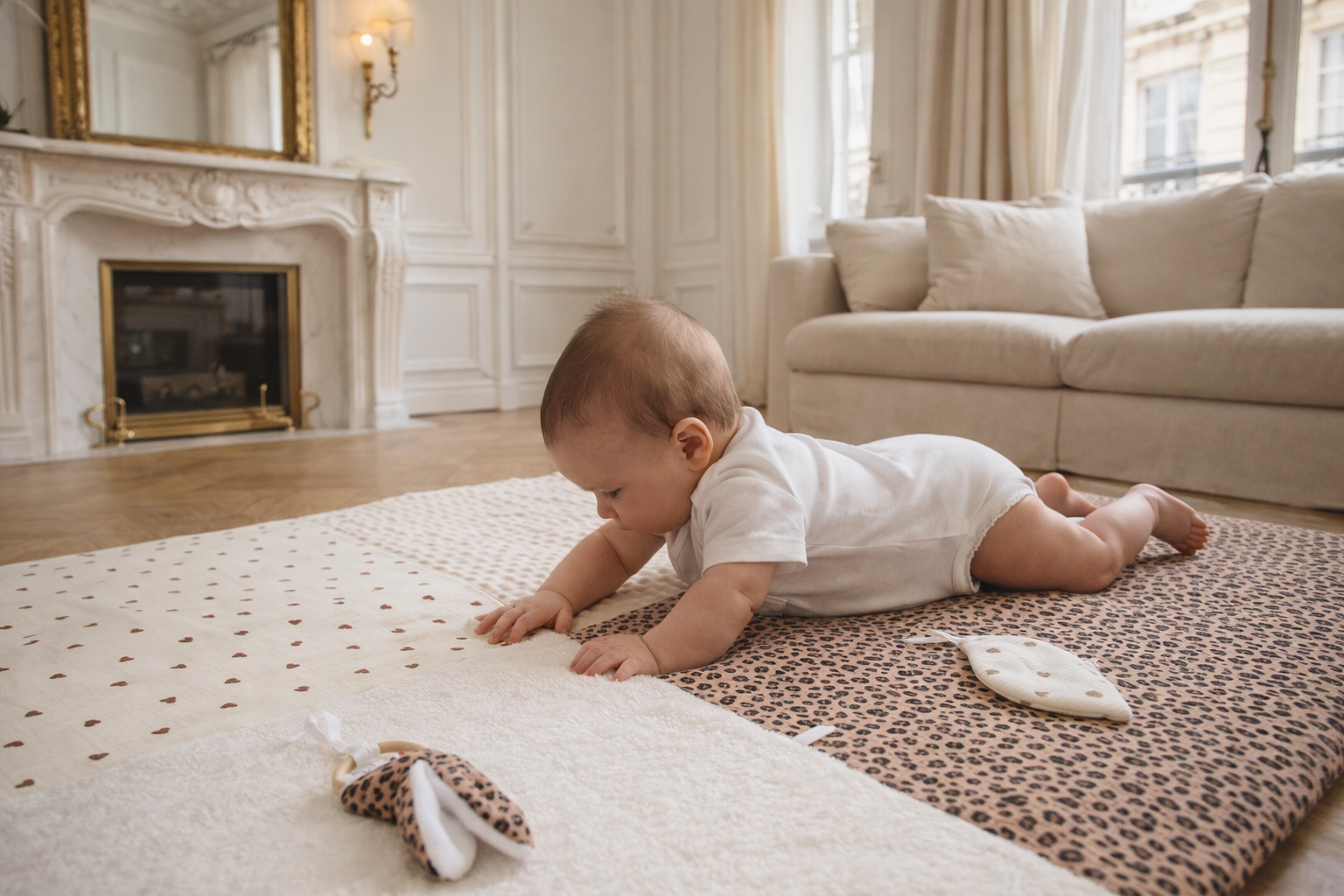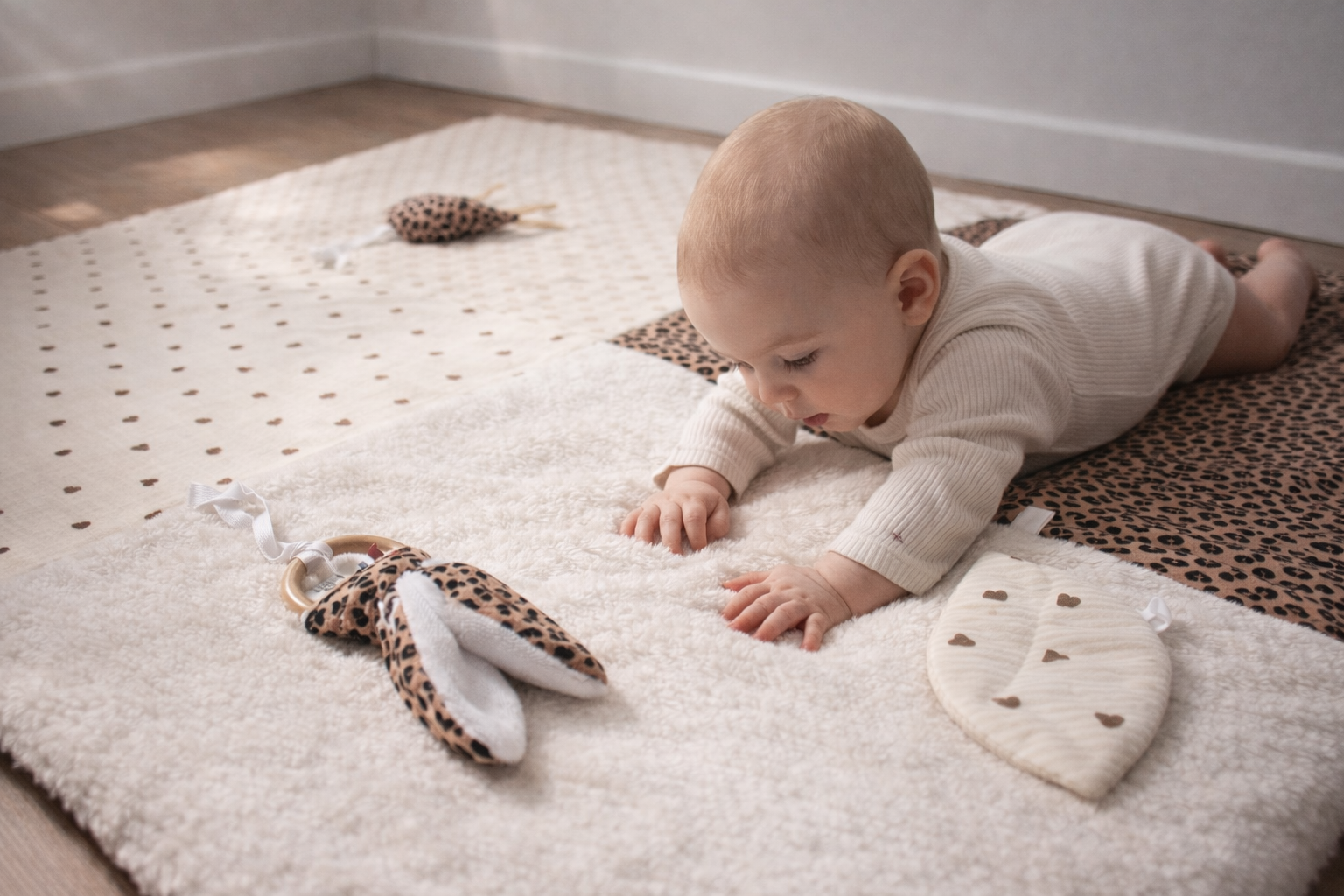 Chaque tapis, chaque jouet soutient le mouvement naturel de bébé et nourrit son envie d’explorer.