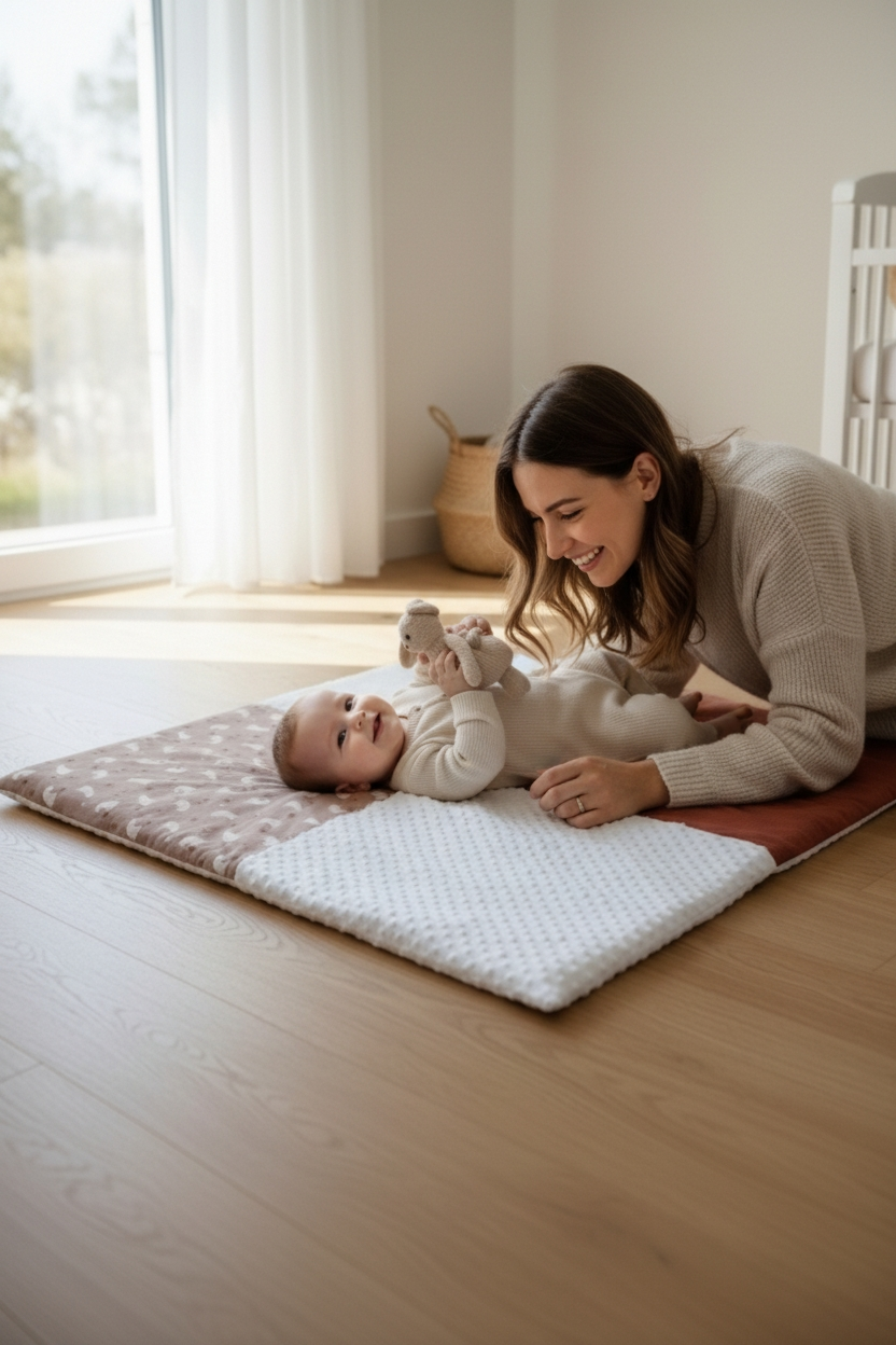 Au sol, un espace doux et familier pour grandir à son rythme.