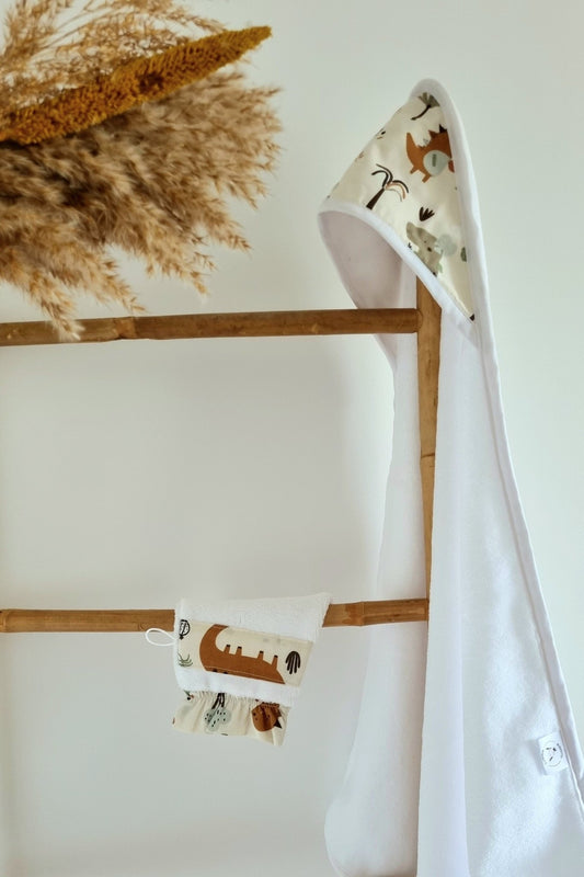 Baby-Badeset – Badeumhang – Feuchttücher – Waschlappen – personalisierte Haarbürste – Rassel – Geburtsset