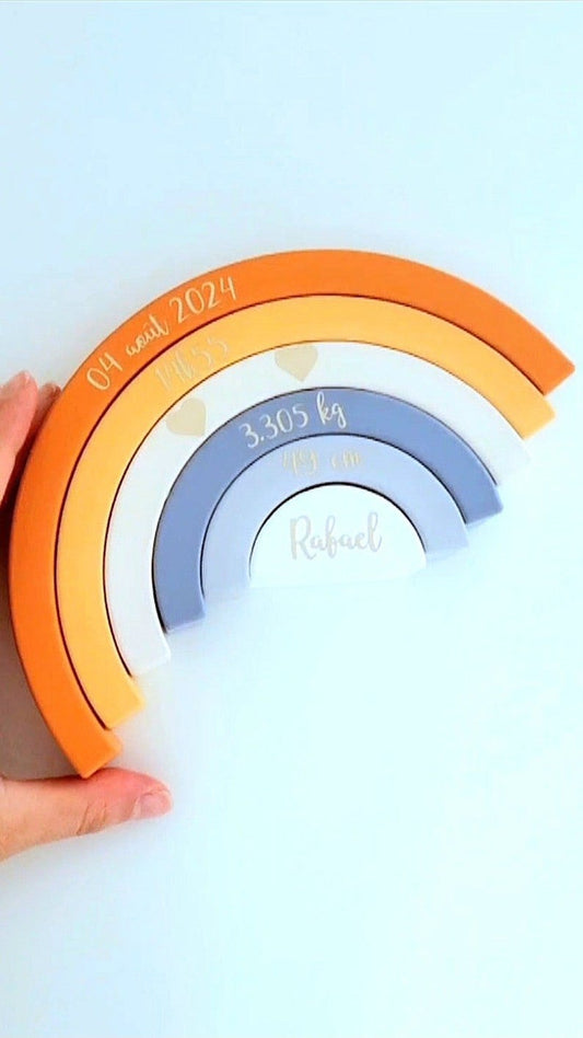 Anpassbarer Regenbogen aus Holz - Geburtsgeschenk