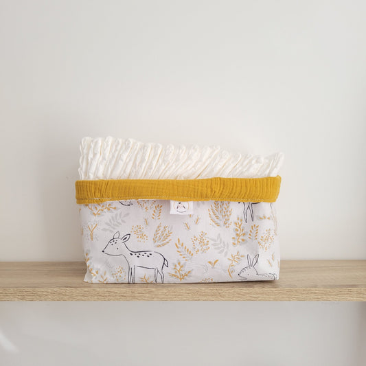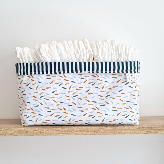Soft and gentle patterns for baby diaper storage boxes that will naturally find their place in your home.