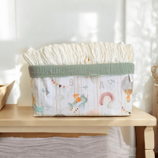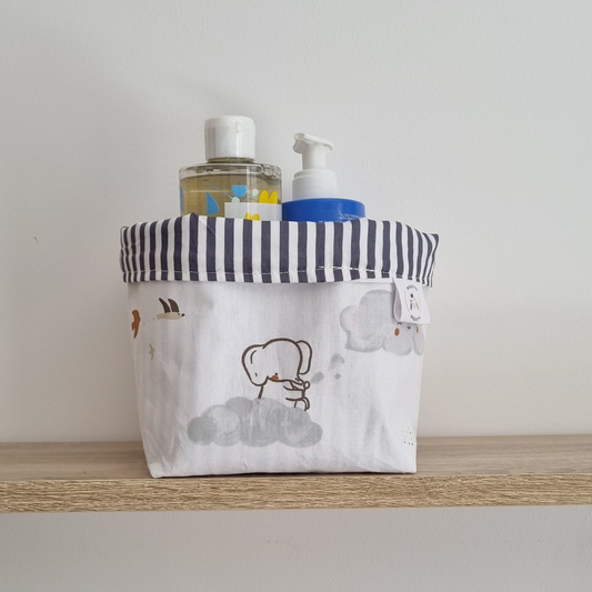 Reversible Fabric Storage Baskets - Clouds and Stripes Pattern